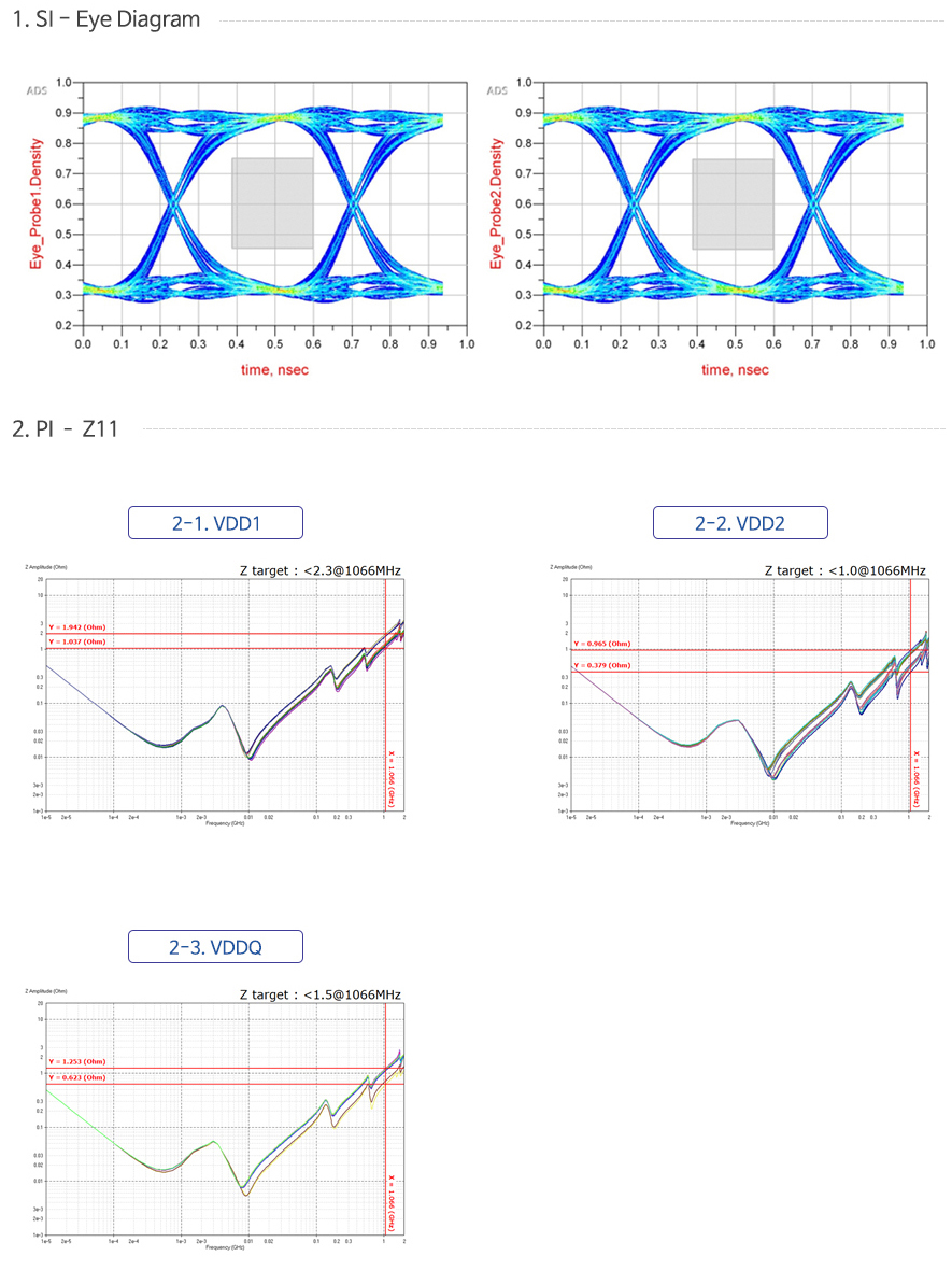 - Prior verification of impedance PI/SI optimized performance with a design using simulation and analysis of high speed signal characteristics and applied this to design. |